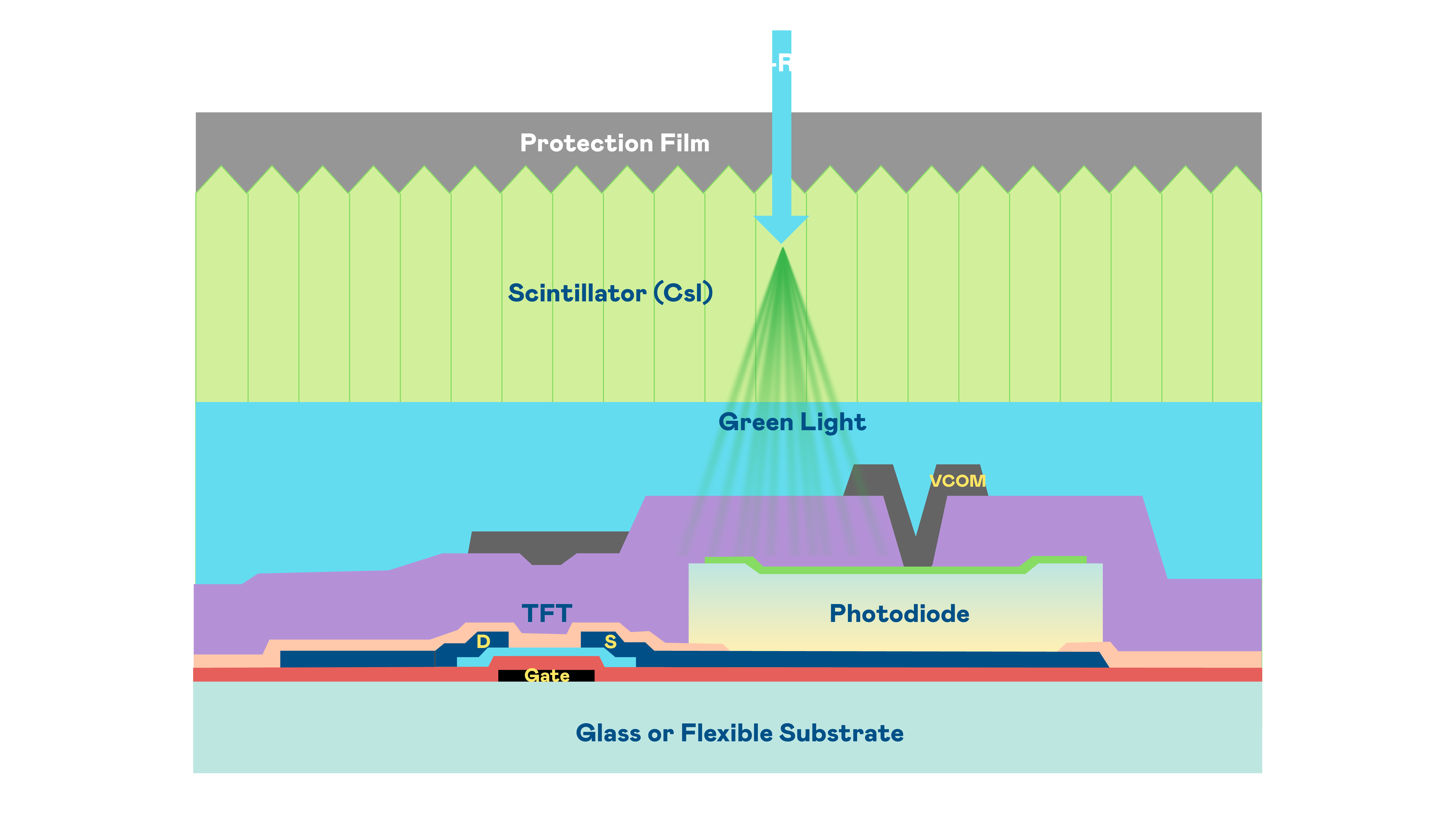 AUO's X-ray image sensor array uses TFT as readout switches for each pixel, along with photodiodes as the photoelectric conversion elements to detect X-ray image signals.